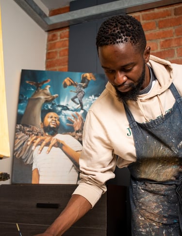 N'lamwai Luntha Chithambo is visual artist based in Johannesburg, South Africa. His work spans over different mediums but predominantly settles on oil painting and illustration.