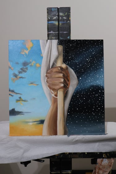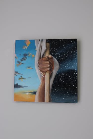 Add this ready-to-hang artwork to your collection. Take a step into the imaginary with this stellar and surreal oil painting.